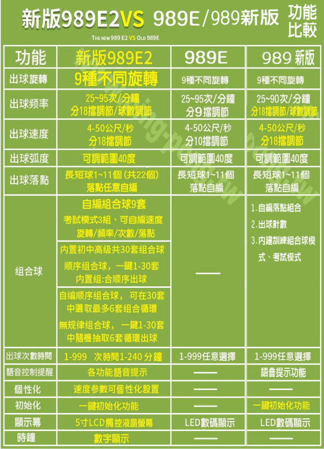 泰德 Y&T V-989-E /V-989-E新版 之進化版→觸控液晶螢幕+30組內置記憶模組+9組自編模組=泰德 Y&T V-989E2 新版全智能自動發球機