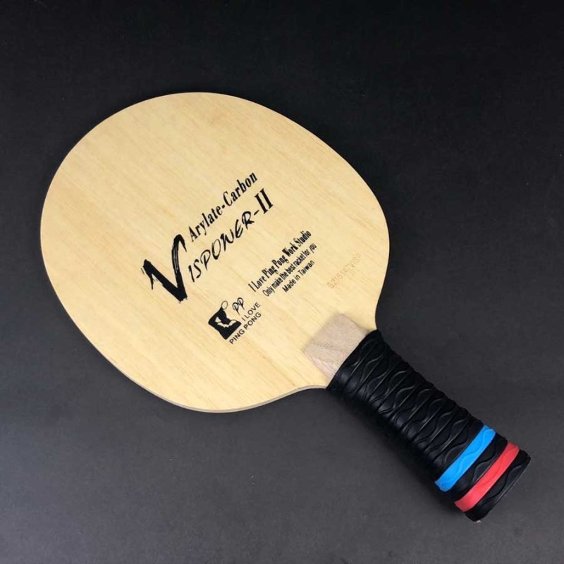【Pro Pro】VISPOWER II ALC碳纖拍,面材特別挑選KOTO板材,以Arylate藍碳纖維基底,讓速度與旋轉提升的同時更強化了準確掌控的特色,讓KOTO板面旋轉與速度達到最平衡的境界,提升擊打新塑料球的旋轉與速度,同時兼顧穩定的擊球回饋,個人技能之優點發揮到極緻。