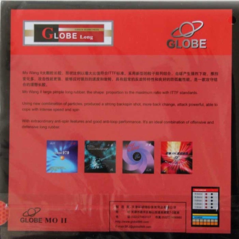 MO WANG II大顆粒長膠,形狀比例以最大比值設計符合ITTF標準,採用最新型粒子排列組合,擊球產生強烈下旋,推擋變化多,攻擊性能更強,能夠對應強烈的速度和旋轉,具有超強的反旋轉特性和良好的防弧圈效果,是一款攻守結合的理想長膠。