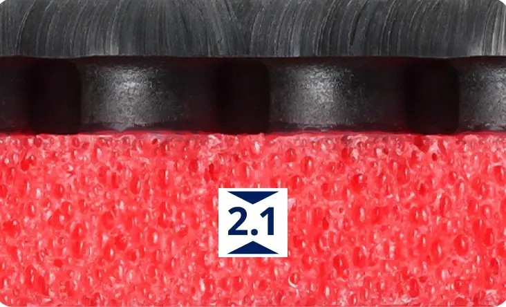 這種結構與片狀複合材料相結合,可提供出色的持球性和耐磨性,以及更堅固的彈性 X海綿。