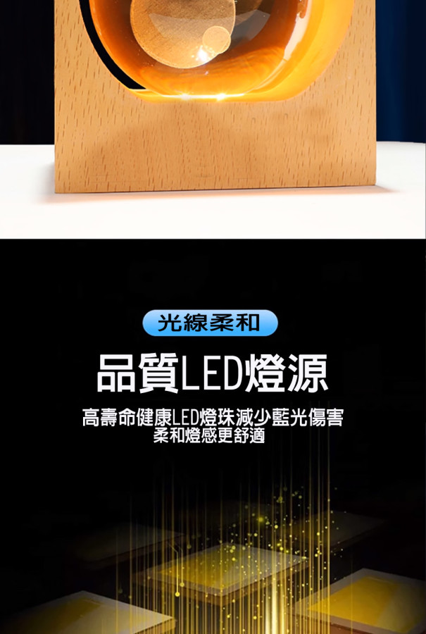 1.高透原料水晶球體+LED燈源