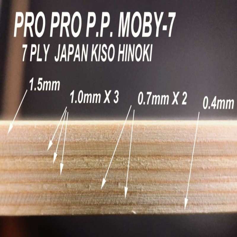日本木曾檜7夾結構差異設計,上層面材1.5mm結購,增加正手拍前衝弧圈球的旋轉咬合度,下層連續6片漸層遞減,稍硬的軟彈度,讓反手觸擊速度增加,很適合反手擰球連碰帶拉的觸擊手感,這是當今現代頂尖選手主流打法所需要的結購設計,您不需球拍兩面要搭配不同性能膠皮,只要用同一款膠皮就能打出不同的擊球效果-----------